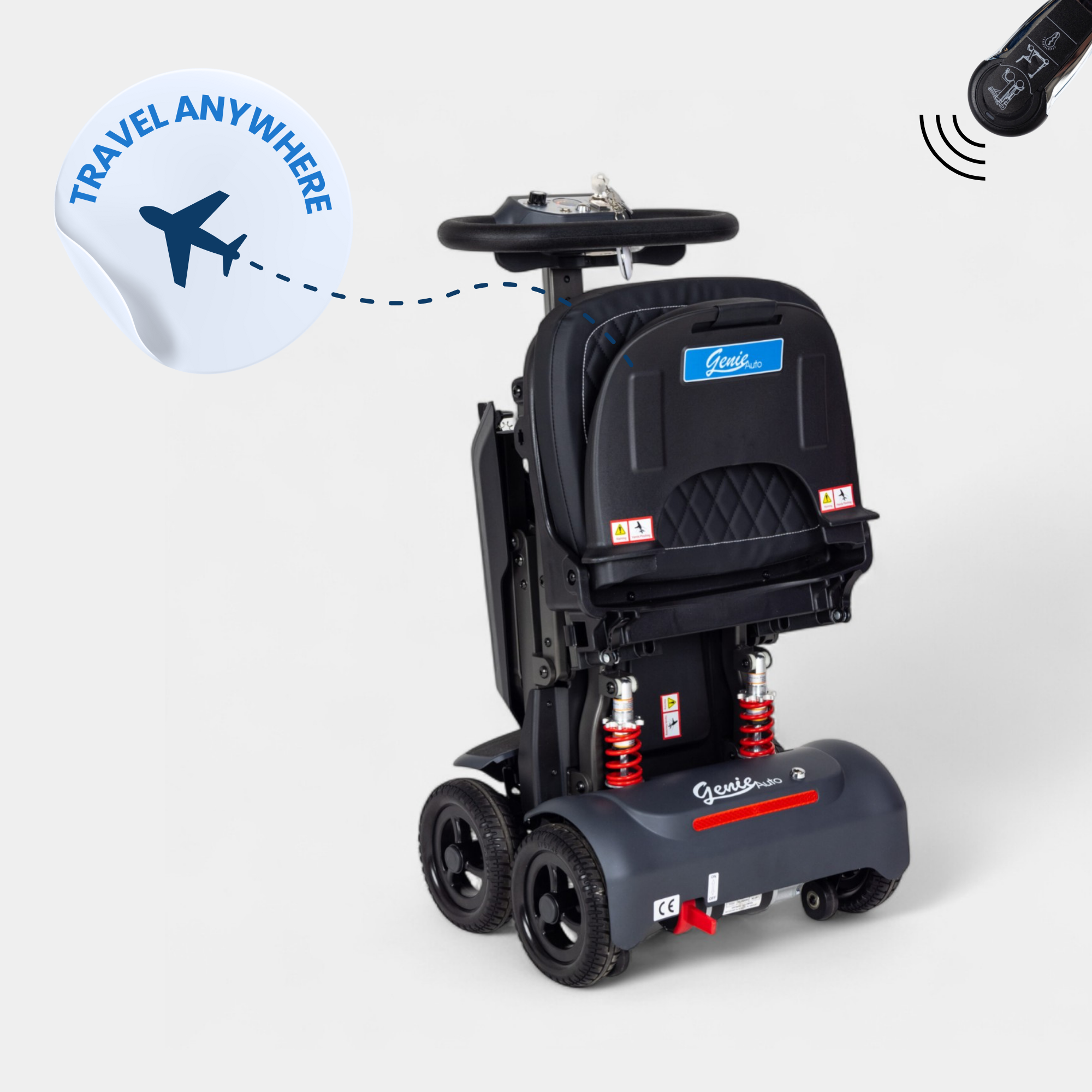 The Genie Auto combines comfort, stability, and true travel-friendliness in one easy-to-use scooter.