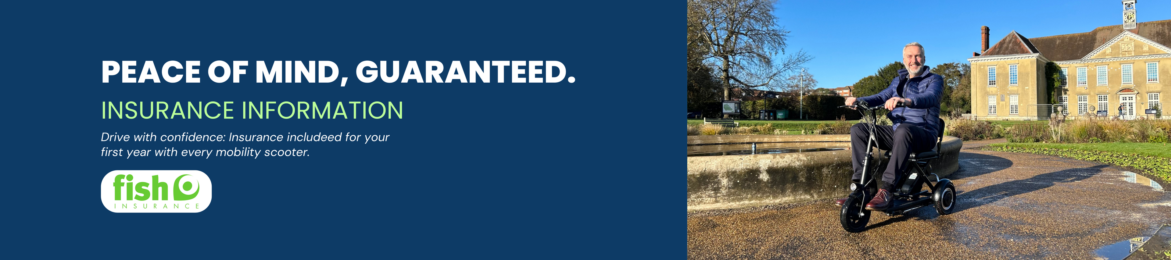 For over 45 years, Fish Insurance has specialised in protecting individuals in the UK’s disability, mobility, and care sectors. With your purchase, you'll receive coverage up to ‘Lite’ for scooters valued at £1,500 or ‘Standard’ for scooters up to £7,000.