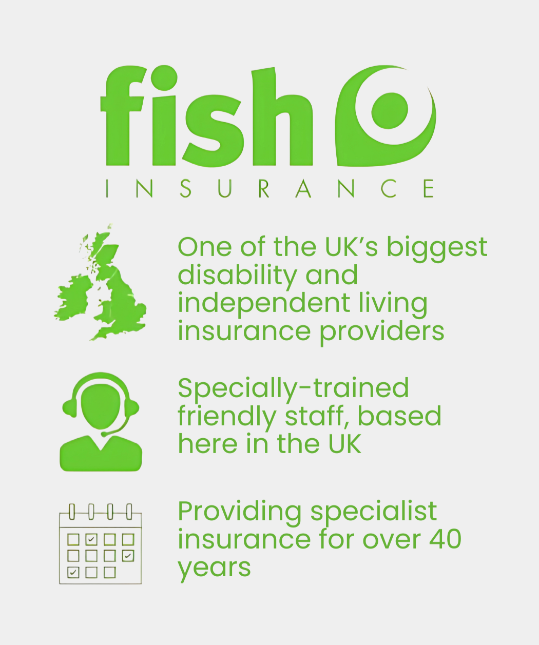 For over 45 years, Fish Insurance has specialised in protecting individuals in the UK’s disability, mobility, and care sectors. With your purchase, you'll receive coverage up to ‘Lite’ for scooters valued at £1,500 or ‘Standard’ for scooters up to £7,000.
