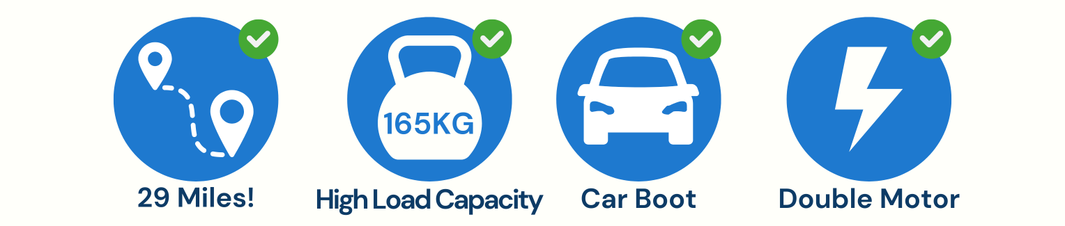 - High Load Capacity: The Ren Folding Mobility Scooter supports a maximum load of 165 kg (25.9 st), making it suitable for a wide range of users while maintaining reliable performance.